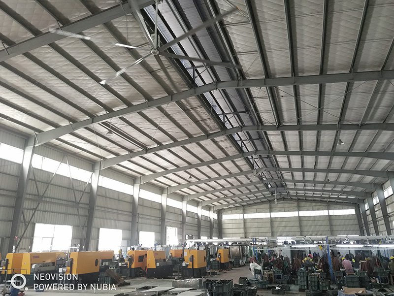 5、安裝不影響工作:風(fēng)扇安裝在離地面5.5米以上的上部空間,通過卡夾方式固定在屋面結(jié)構(gòu)梁上,不會影響任何地面工作區(qū)域正常工作進程,安全可靠。
