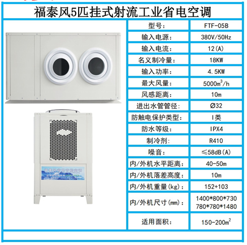 .節能省電、同等面積安裝比傳統空調省電30~50%,覆蓋面積大一臺5P的可以覆蓋200個平方車間降溫,出風口溫度可以做到13-16度。車間溫度可做到20-26度適合人體體感溫度。